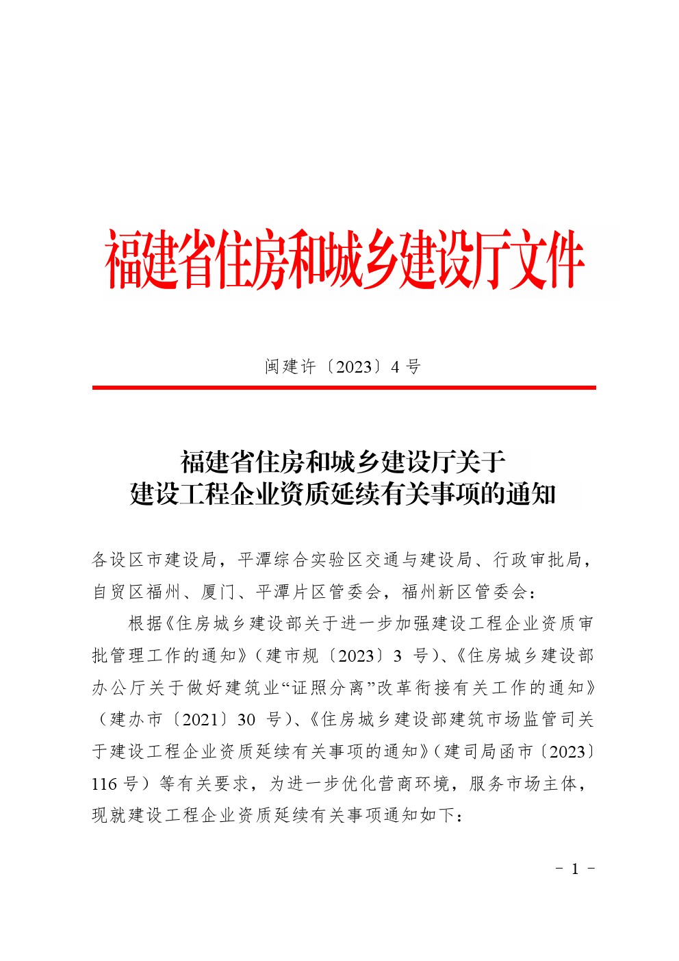 福建省住房和城乡建设厅关于建设工程企业资质延续有关事项的通知